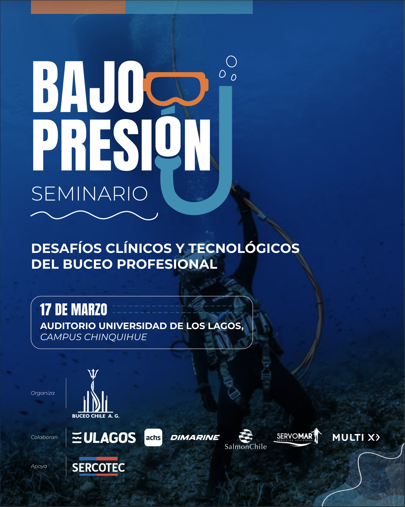 Te invitamos a participar en el Seminario “Bajo Presión: Desafíos Clínicos y Tecnológicos del Buceo Profesional”, un espacio de análisis y diálogo sobre medicina hiperbárica, innovación tecnológica y prevención de riesgos en el buceo industrial.