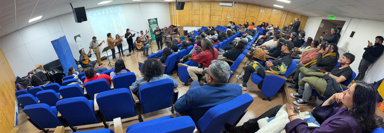 Conversatorio, conciertos y un cierre colectivo marcaron la llegada de “En las rutas del charango” a la Universidad de Los Lagos, un espacio que celebró la historia y la vigencia de este instrumento andino en la música popular chilena y que contó con una gran afluencia de público interesado en disfrutar la singular música de charango.