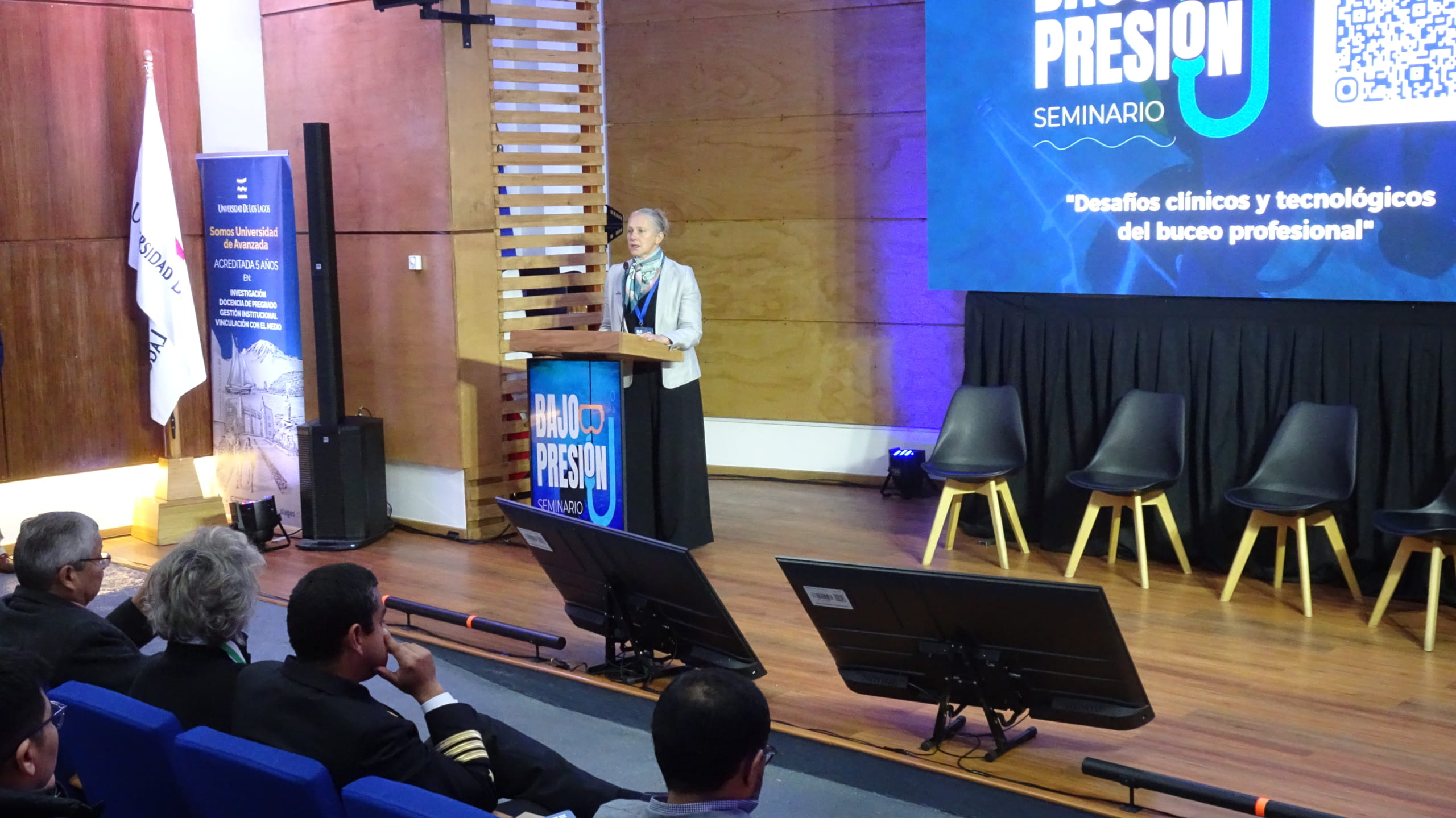 El seminario se realizó en el Aula Magna del Campus Puerto Montt ubicado en Chinquihue. Reunió a destacados especialistas de Chile y España en torno a la investigación multidisciplinar y la prevención de enfermedades críticas en el entorno subacuático.  En esta jornada fueron actualizados los protocolos de tratamiento en accidentes descompresivos,  presentados los  avances tecnológicos aplicados a la seguridad del  buzo profesional y difundidos los últimos hallazgos relacionados con el bienestar de los trabajadores subacuáticos de la Región de Los Lagos y La Araucanía.