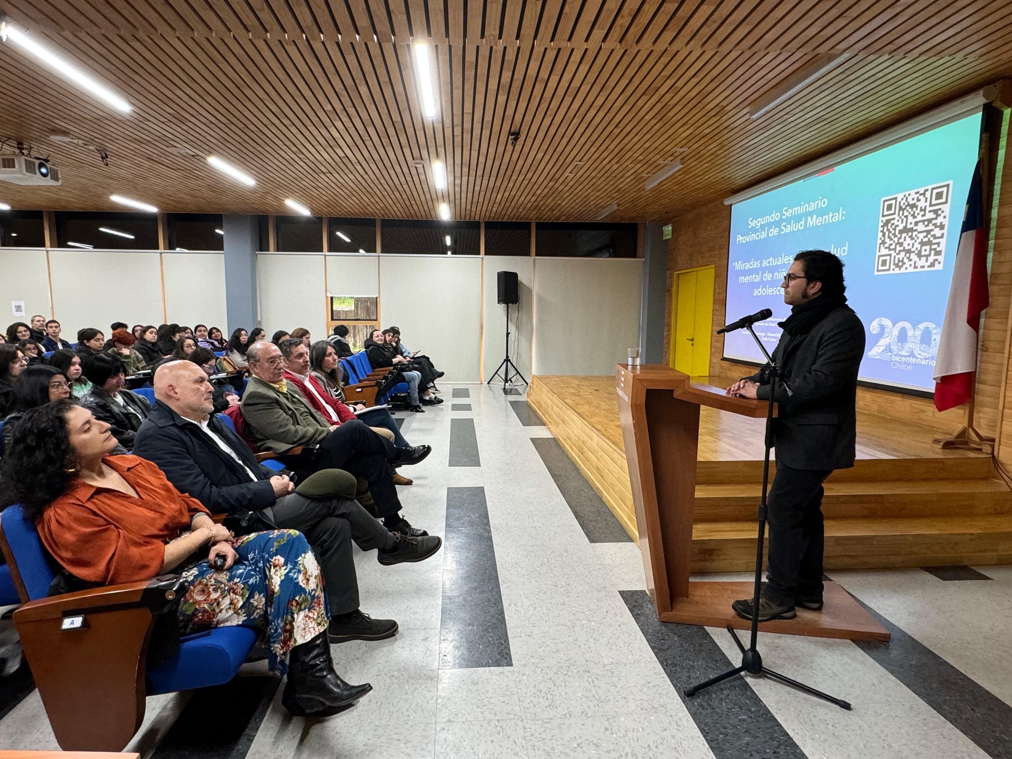 En el auditorio de la ULagos y con una amplia participación de la comunidad local, inició el seminario con las palabras de bienvenida del Director (s) del Servicio de Salud Chiloé, Eric Gutiérrez, quien subrayó la importancia de visibilizar los desafíos que enfrentan las nuevas generaciones en materia de salud mental: